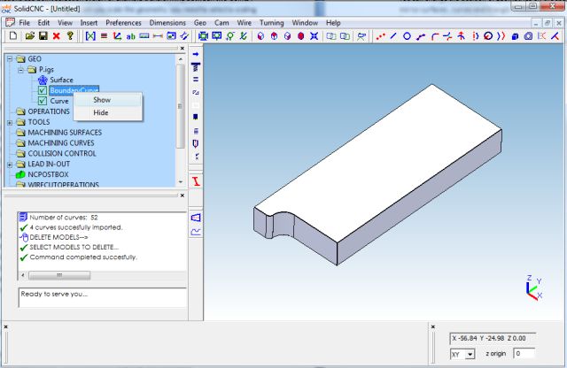 We will hide the boundary curves of P.igs from treeview as shown in