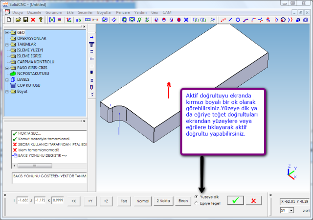 you must tell the system extrusion direction. SolidCNC use vector selection cycle