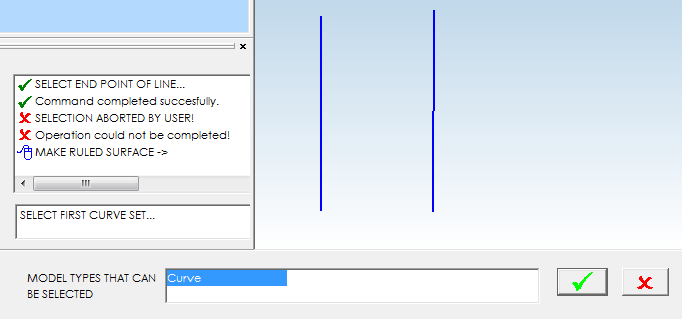 Ruled surface will be created when the selection confirmed.