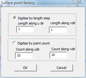 You can again select a distance step or point count along u and v directions of the surface.